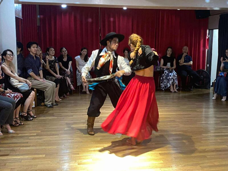 大会に向けて頑張っているお2組Hiro & Taki(from Nagoya)とTani & Hazuki をお招きして、パフォーマンスして頂きます。Silmolinaシルモリーナのミロンガドレスfrom ブエノスアイレス販売もあります。